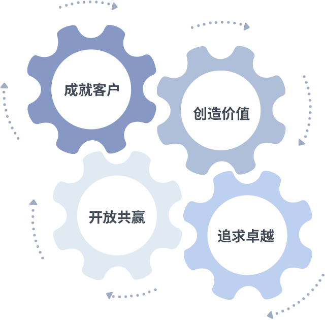 成就客户是一切决策的出发点,创造价值是衡量所有工作的标准,追求卓越是一竞技做事做人的态度,开放共赢是一竞技的格局也是最终的结果。价值观的齿轮环环相扣,推动着组织里的每个人不断向前。